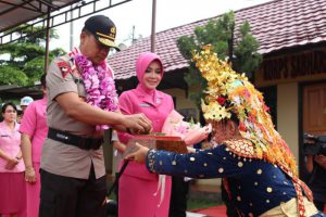 Kapolda Sumsel dan rombongan disambut dengan jajaran kehormatan lalu pengalungan bunga sebagai bentuk penghormatan kepada Kapolda Sumsel beserta ibu Ketua Bhayangkari Daerah Sumsel dilanjutkan dengan sebuah tarian Sekapur Sirih sebagai ungkapan penyambutan selamat datang di bumi Seinggok Sepemunyian Polres Prabumulih AKBP I Wayan Sudarmaya dan Walikota Prabumulih serta Forkopimda kota Prabumulih.