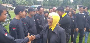Calon Bupati OKU, Hj Sumaiyah saat menyalami anggota Barisan Pemuda Lengkiti Bersatu