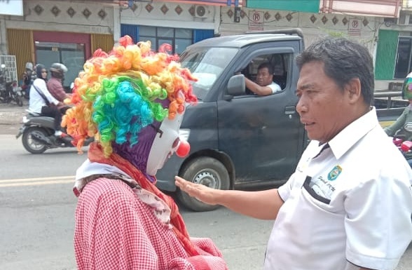 Baturaja, BP–Terkait maraknya badut di dimpang empat lampu merah Air Paoh dan di Jembatan Ogan 2 Baturaja Timur yang meresahkan masyarakat, Dinas Sosial (Dinsos) Kabupaten Ogan Komering Ulu (OKU) melakukan razia dan pengawasan serta pendekatan secara persuasif kepada badut-badut yang melakukan aksinya di tempat yang dilarang.
