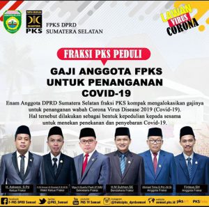 Enam anggota DPRD Provinsi Sumatera Selatan (Sumsel) dari Fraksi PKS DPRD Sumsel mendonasikan gaji bulan Maret 2020 untuk membantu penanggulangan penyebaran virus corona atau Covid-19.