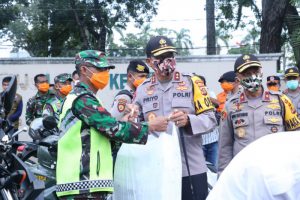 Hari ini, sebanyak 1.200 nasi bungkus dibagikan kepada warga di beberapa wilayah seperti Kelurahan Karang Jaya Kecamatan Gandus, Kelurahan 36 Ilir, Kelurahan Talang Jambe dan Talang Betutu Kecamatan Sukarami, Kelurahan Kuto Batu dan 9 Ilir Kecamatan IT III, Kelurahan Selincah Kecamatan Kali Doni, Kecamatan Ilir Barat II dan Kelurahan Kemuning, Kota Palembang. Termasuk sebanyak 300 nasi bungkus yang dibagikan kepada warga yang berada sekitar jalan.jalan Kota Palembang, seperti Ojol, pedagang keliling, pemulung dan tukang becak. Sehingga dalam sehari, petugas dari TNI-Polri telah mendistribusikan sebanyak 1.500 bungkus nasi kepada warga kurang mampu.