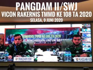 Usai kegiatan Rakornis bersama Aster Kasad, Pangdam II/Sriwijaya Mayjen TNI Irwan, S.I.P., M. Hum., didampingi Kasdam II/Swj Brigjen TNI Muhammad Zamroni, langsung memimpin Rakornis di lingkungan Kodam II/Swj, terkait dengan program yang akan dilaksanakan dalam TNI Manunggal Membangun Desa (TMMD) Ke-108 Kodam II/Swj Tahun 2020, Selasa (9/6/2020) di Gedung Sudirman Makodam II/Swj Palembang.