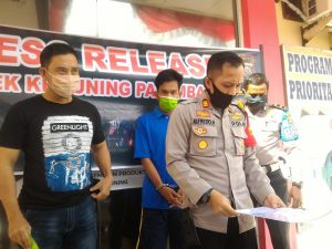 “Tersangka kita dapati 2 paket narkotika jenis sabu, selagi anggota kita melakukan giat 21 di kawasan Pahlawan. Narkoba ini disembunyikan dalam tas pelaku,” kata Alfredo Hidayat SIK Kapolsek Kemuning didampingi Kanit Reskrim Iptu Arlan Hidayat SH.