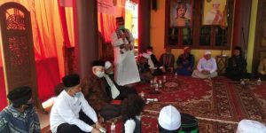 Suasana haul atau memperingati 3 tahun wafatnya Sultan Mahmud Badaruddin (SMB) III Raden Haji Muhammad Sjafei Diradja Bin Raden Haji Abdul Hamid di Istana Adat Kesultanan Palembang Darussalam di Jalan Sultan Muhammad Mansyur No 776, 32 Ilir Palembang, Minggu (6/9).Acara haul di gelar secara standar kesehatan covid-19 dan berlangsung secara khidmat.