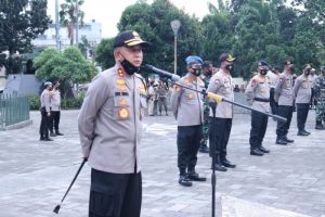 Kapolda Sumatera Selatan (Sumsel) Irjen Pol Prof. Dr. Eko Indra Heri S., MM menjadi pimpinan apel dan monitoring pelaksanaan Ops Yustisi Polrestabes Palembang Dalam Rangka Penegakan Disiplin Protokol Kesehatan (Prokes) Covid-19 di Halaman Monpera Kota Palembang, Kamis (17/9).