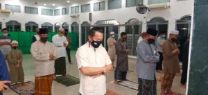 Kapolda Sumatera Selatan (Sumsel) Irjen Pol Prof Dr.Eko Indra Heri S MM didampingi Pejabat Utama Polda Sumsel mengikuti Sholat Tasbih diMasjid Alaman Komplek Pakri Palembang Rabu malam (30/9).