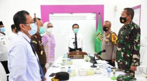 Komandan Korem (Danrem) 044/Gspo Brigjen TNI Jauhari Agus Suraji S.IP, S.Sos mengikuti kegiat vicon, rabu (14/10) di ruangan Comand Center Kantor Gubernur Sumsel.