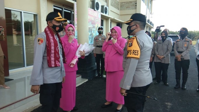 Dalam pisa sambut tapak AKBP Yudhi Suhariyadi, Sik yang di dampingi Ketua Bhayangkari Ny Kiky Yudhi Suhariyadi