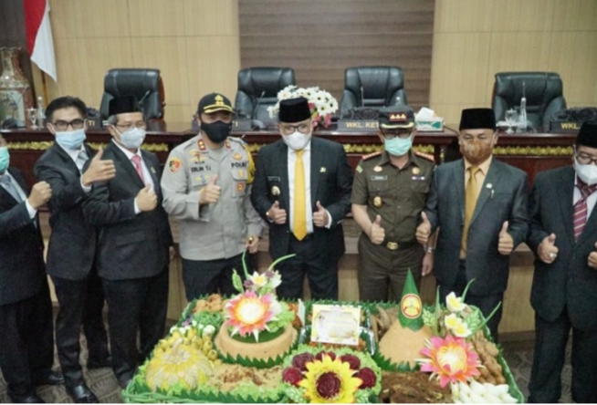 “Saya ucapkan terima kasih atas upaya maksimal Ketua DPRD beserta Anggota DPRD dan Tim TAPD yang telah bekerja keras dan kerjasama yang baik, saya bangga karena dalam waktu yang relatif singkat sesuai dengan jadwal dan ketentuan kita dapat merampungkan pembahasan APBD 2021,” ujarnya.