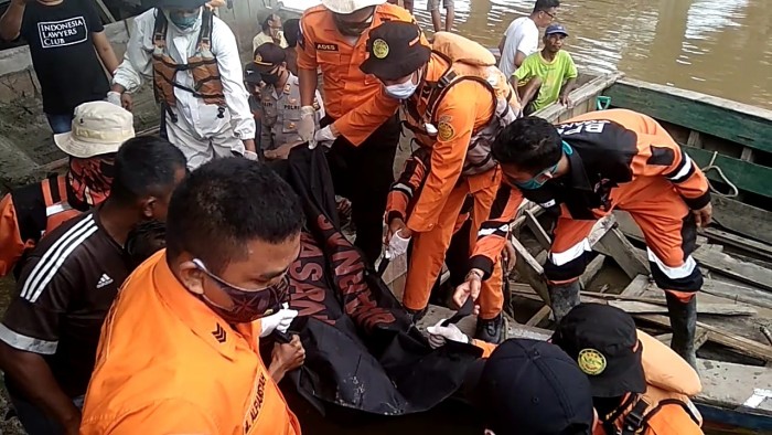Tim SAR yang mendapat informasi jasad kroban ditemukan, langsung menuju ke TKP dan melakukan evakuasi menggunakan kapal.