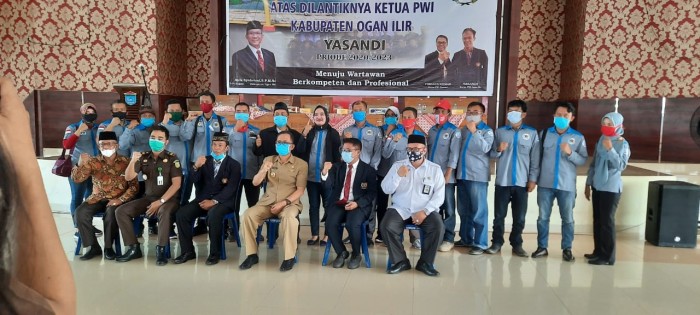 “Jangan membenarkan yang biasa, kalau molor dulu kita sekarang harus disiplin harus ontime. Saya lihat tadi pukul 13.00wib masih kosong, sampai pukul 14.00wib masih latihan. Kalau yang kemarin suka molor, yang sekarang jangan. Kita harus tepat waktu ontime, jangan membenarkan yang biasa,”katanya Selasa (17/11) saat menghadiri pelantikan di Aula Guest House Bupati OI KPT Tanjung Senai Inderalaya. Ditambahkannya dirinya sangat bangga dengan adanya pelantikan kepengurusan PWI OI. Menurutnya jika OI memiliki prestasi namun jika tidak diberitakan oleh media, maka prestasi daerah tersebut tidak bisa diketahui oleh khalayak ramai. “Karena itu baik buruknya suatu daerah itu tergantung dari bagaimana penulisan berita yang dilakukan oleh jurnalis. Kalau berita positif maka investor wisatawan akan hadir yang berdampak bagi pembangunan OI, kalau negatif akan berdampak pula bagi daerah teraebut. Karena itu jadilah wartawan profesional sehingga bisa memberitakan sesuai fakta,”katanya. Turut hadir Ketua PWI Sumsel H Firdaus Komar, Ketua PWI OI Yasandi, Ketua PWI OI periode 2017-2020 M Gusti Ali dan sebagainya.#hen