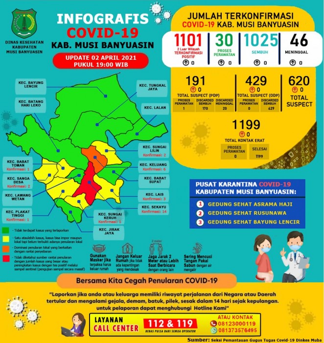 “Ya, tidak ada penambahan kasus positif per 2 April 2021,” ungkap Jubir Gugus Tugas Penanganan COVID-19 Muba, Herryandi Sinulingga AP.