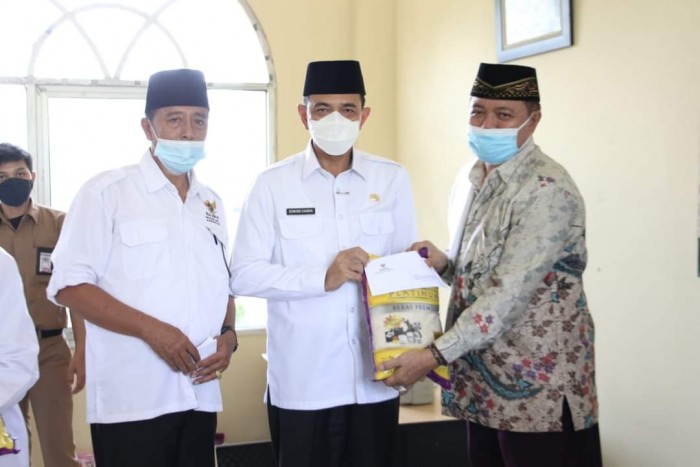 Baturaja, BP–Plh Bupati OKU Edward Candra, menghadiri acara Penyaluran Dana Zakat, Zakat Fitrah, Infak dan Shodaqoh kepada para mustahik bertempat di Gedung Baznas OKU, Senin (10/5/2021).