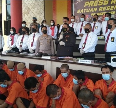 Ditambahkannya, dari kasus-kasus itu ada 59 tersangka yang terlibat dengan rincian 49 orang dewasa dan 10 orang anak-anak. Namun, pada saat rilis tersebut hanya para tersangka anak-anak tidak ditampilkan, sedangkan dari 49 tersangka, hanya 27 yang ditampilkan.