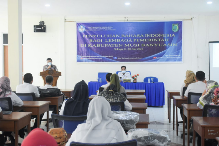 Sekayu, BP– Balai Bahasa Provinsi Sumatera Selatan bekerja sama dengan Pemerintah Kabupaten Musi Banyuasin menggelar Sosialisasi Penyuluhan Bahasa Indonesia Bagi Lembaga di Lingkungan Pemerintahan Kabupaten Musi Banyuasin, Selasa (8/06/2021) di Wisma Atlet Sekayu.