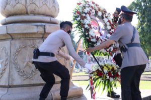 Rangkaian kegiatan diawali dengan penghormatan kepada arwah para pahlawan, mengheningkan cipta, peletakan karangan bunga di monumen TMP oleh Kapolda, penghormatan terakhir, dan pembacaan doa.