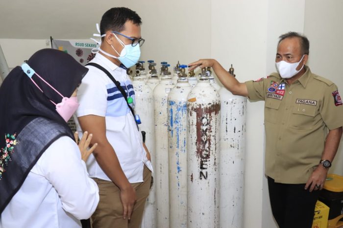 Sekayu, BP– Kelangkaan oksigen di sejumlah wilayah tidak berpengaruh di Kabupaten Musi Banyuasin. Hal ini dipastikan saat Sekretaris Daerah Muba Drs Apriyadi MSi mendatangi RSUD Sekayu, Rabu (7/7/2021).