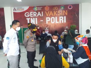 Palembang, BP- Kapolda Sumatera Selatan (Sumsel), Irjen Pol Prof.Dr Eko Indra Heri. S. MM, meninjau Gerai Vaksin dan Perberlakukan Pembatasan Kegiatan Masyarakat (PPKM) serta bakti sosial yang dilaksanakan di Polres Muara Enim dengan tema ” Merajut Kebhinekaan Membangun Kebersamaan Dalam Keberagaman Guna mewujudkan Harkamtibmas yang aman Dan Kondusif”, Sabtu ( 17/7).