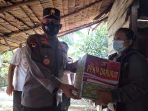 Palembang, BP- Kapolda Sumatera Selatan (Sumsel), Irjen Pol Prof Dr Eko Indra Heri S MM, bersama Dirreskrimum Polda Sumsel Kombes Pol Hisar Siallagan,Wadir Binmas AKBP Azzam Himawan Sik,Pengurus PP Polri Polda Sumsel AKBP Purn Darmadi SH memberikan bantuan kepada masyarakat yang sedang melaksanakan Isoman Covid-19, Rabu (28/7) di Slum Area wilayah Kelurahan Talang Betutu Kecamatan Sukarame Palembang .