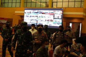 Sebelum mengakhiri kegiatan, Panglima TNI dan Kapolri melaksanakan peninjauan kegiatan vaksinasi melalui virtual di wilayah Provinsi Jambi yang diikuti dengan total titik wilayah/tempat Provinsi Jambi yang diikuti 26 Peserta baik dari Korem, Kabupaten, Polres, Kodim dan Dinas Kesehatan.