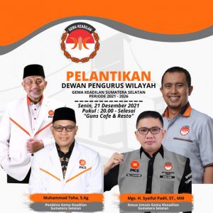 Syaiful mengatakan, dengan kehadiran Ketua dewan Pembina Pusat yang juga Presiden PKS dalam pelantikan ini diharapkan dapat menambah semangat Gema Sumsel untuk berkontrubusi.
