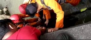 Diduga kuat korban terpeleset ke gorong-gorong saat hendak mengambil barangnya yang terjatuh.#osk