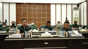 Palembang, BP – Pangdam II/Sriwijaya Mayjen TNI Agus Suhardi menerima paparan Danrindam II/Sriwijaya dalam rangka rencana latihan penyiapan Pratugas Satgas Pamtas RI-PNG Yonif Raider 142/Ksatria Jaya di wilayah Papua dan Papua Barat Tahun Anggaran 2022 di Ruang Gatot Subroto Makodam II/Sriwijaya di Jalan Jenderal Sudirman KM. 2,5 Kota Palembang, Kamis (6/1).