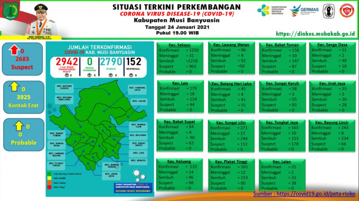 “Nihil penambahan kasus per 24 Januari 2022,” ungkap Jubir Gugus Tugas Penanganan COVID-19 Muba, Herryandi Sinulingga AP.