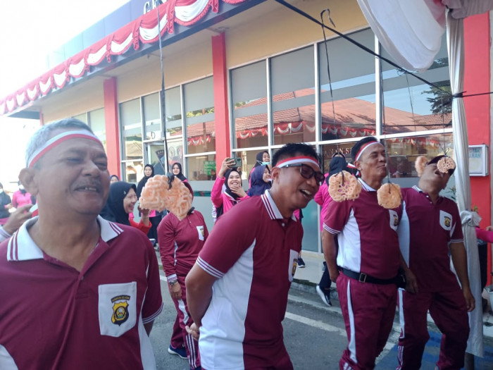 Kemeriahan tersebut tampak dari raut kegembiraan ratusan anggota yang begitu antusias dan bersemangat mengikuti berbagai perlombaan yang diagendakan. Para anggota bersama persatuan ibu-ibu Bhayangkari memberi support saat Kapolres Muaraenim mengikuti lomba balap karung, lomba makan kerupuk.