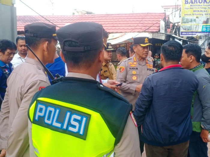 PALEMBANG, BP – Kapolrestabes Palembang, Kombes Pol Mokhamad Ngajib SIK. MH melakukan peninjauan kembali lokasi kebakaran Pasar Cinde Palembang bersama Direskrimun Polda Sumsel, Kombes Pol M. Anwar Reksowidjojo S. I. K, Wakil Walikota Palembang Fitrianti Agustinda, Dirut PD Pasar Palembang Jaya, dan Camat Bukit Kecil.