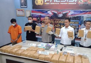 Palembang, BP- Sebanyak 30 kilogram (kg) Ganja berasal dari Medan yang akan dikirim ke daerah Kabupaten Purwokerto, Kota Bandung, Provinsi Jawa Barat (Jabar), berhasil digagalkan anggota Satres Narkoba Polrestabes Palembang, Jumat (27/1) sekira pukul 17.45 WIB, di Jalan Baypass, Alang – Alang Lebar, Kecamatan Alang – Alang Lebar, Palembang, dan dengan tersangka EF (29) warga Kepulauan Cirawa, Kecamatan Malabong, Kabupaten Garut, Provinsi Jabar.