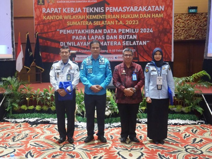PALEMBANG, BP – Kantor Wilayah Kementerian Hukum dan HAM Sumatera Selatan menggelar Rapat Kerja Teknis Pemasyarakatan Tahun 2023, Kamis (9/2), bertempat di Hotel Aryaduta Palembang. Topik yang diangkat yaitu Pemutakhiran Data Pemilu 2024 di Lapas/ Rutan se-Sumatera Selatan.