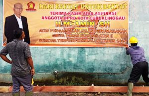 Sementara itu, warga Perumahan Griya Pasar Ikan membentangkan spanduk sebagai bentuk ucapan terima kasih, karena aspirasi mereka sudah direalisasikan oleh anggota DPRD dari Partai Gerindra.