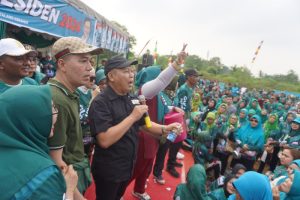 Palembang, BP- Sebanyak 1.500 emak-emak Komunitas Senam Sehat menggelar senam massal dan menyampaikan deklarasi mendukung Gus Imin Presiden 2024 di Lapangan Talang Keramat, Jumat (30/6).