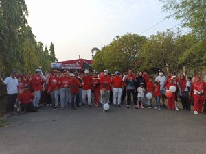 Jalan Santai Keluarga dengan tema “Family Gathering 62” start di mulai di depan rumah Ketua panitia HUT RI ke 78, Rt 62, Sahferi Nurdin di Jalan BP Peliung 1.