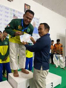 Lahat, BP- Personel Bidang Propam Polda Sumsel Briptu M Octa Satriawan menorehkan prestasi gemilang diajang Pekan Olahraga Provinsi (Porprov) IV Lahat 2023 menyabet dua medali emas dan perak dicabang olahraga Judo. Medali emas yang diraih Briptu M Octa Satriawan dikelas BB point 100 kg beregu putra, sedangkan medali perak dikelas 100 kg perorangan senior.