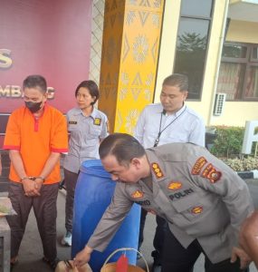 Palembang, BP- Unit Pidana Khusus Polrestabes Palembang mengamankan Arjo Matjuri (53), warga Jalan Macan Lindungan, Perum Putri Wulan, Kelurahan Bukit Baru Kecamatan IB I lantaran telah memalsukan atau mengoplos Bahan Bakar Minyak (BBM) jenis pertalite dan solar dengan bahan minyak asal