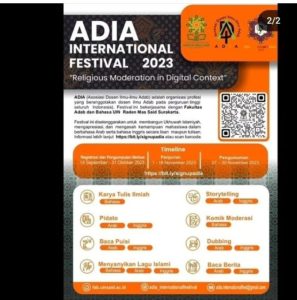 Palembang , BP– ADIA (Asosiasi Dosen Ilmu-Ilmu Adab) bekerja sama dengan Fakultas Adab dan Bahasa UIN Raden Mas Said Surakarta mengadaakan kegiatan ADIA International Festival 2023, kegiatan yang dilaksanakan dengan