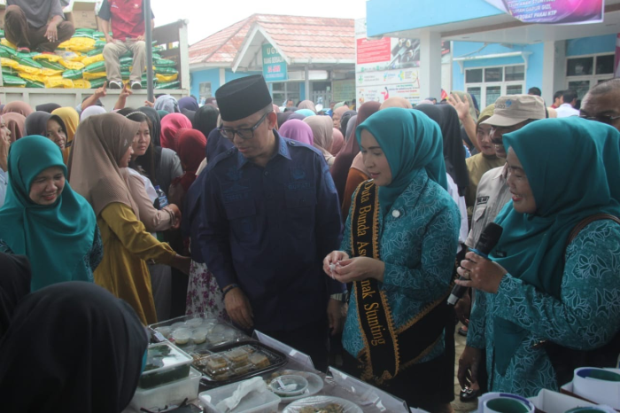 Launching kegiatan itu ditandai dengan pemberian makanan tambahan untuk anak-anak penderita stunting oleh PJ Bupati OKU H Teddy Meilwansyah bersama PJ Ketua TP PKK OKU H Zwesty Karenia Teddy didampingi Kadinkes OKU Deddy Wijaya.