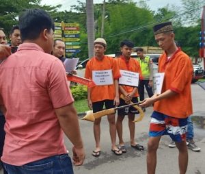 Adegan ketiga, saksi RF memberikan senjata tajam jenis celurit kepada tersangka MK. Dan adegan keempat, tersangka MK bertemu dengan saksi RN yang membawa tombak besi dan saksi FD membawa senjata tajam jenis celurit.