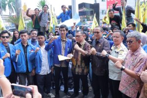 Palembang, BP- Sehari usai dilantik sebagai Penjabat (Pj) Walikota Palembang, Ucok Abdulrauf Damenta didemo massa dari Pengurus Cabang Pergerakan Mahasiswa Islam Indonesia (PC PMII) Kota Palembang, Kamis (20/6).