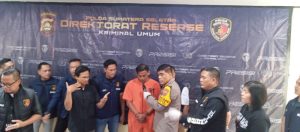 Dengan memakai baju tahanan Polda Sumsel berwarna oranye, Datuk dihadirkan langsung dalam pres rilis dihadapan wartawan Sabtu (14/12/2024).