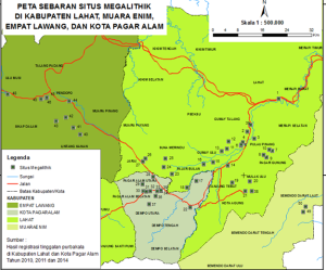 Peta. Sebaran Situs Megalitik di Kabupaten Lahat, Muara Enim,