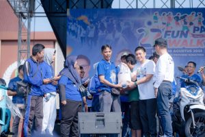 “Ada 270 karung beras 5 kilogram yang kami berikan kepada pengemudi ojol dan masyarakat di acara funwalk ini. Kegiatan ini sebagai peduli partai kepada masyarakat,” ungkapnya.