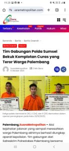 Ketiga tersangka saat ini telah diamankan di Polrestabes Palembang untuk pemeriksaan lanjutan. Polisi juga tengah melakukan pengembangan terhadap jaringan curas lainnya yang diduga masih beroperasi di wilayah Sumatera Selatan.#udi