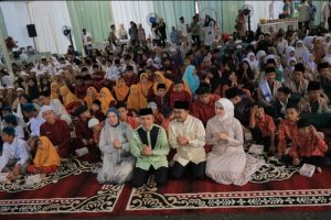 Palembang,BP- Dalam sebuah acara yang penuh makna dan kebersamaan, Walikota Palembang, Ratu Dewa, dan Wakil Walikota Palembang, Prima Salam, menggelar Tasyakuran Satu Tahun Kepemimpinan di Rumah Dinas Walikota, Jalan Tasik Palembang, Jumat (20/02/2026). Acara ini dihadiri oleh 479 anak yatim penerima santunan, seluruh Perangkat Daerah, serta tokoh agama.Kegiatan tasyakuran ini dirangkai dengan buka puasa bersama, sholat magrib, isya, dan tarawih bersama. Dalam sambutannya, Ratu Dewa menyampaikan bahwa satu tahun kepemimpinan yang telah dijalankan bukanlah sekedar suatu amanah, melainkan suatu tanggung jawab dalam memberikan pelayanan terbaik kepada masyarakat kota Palembang.